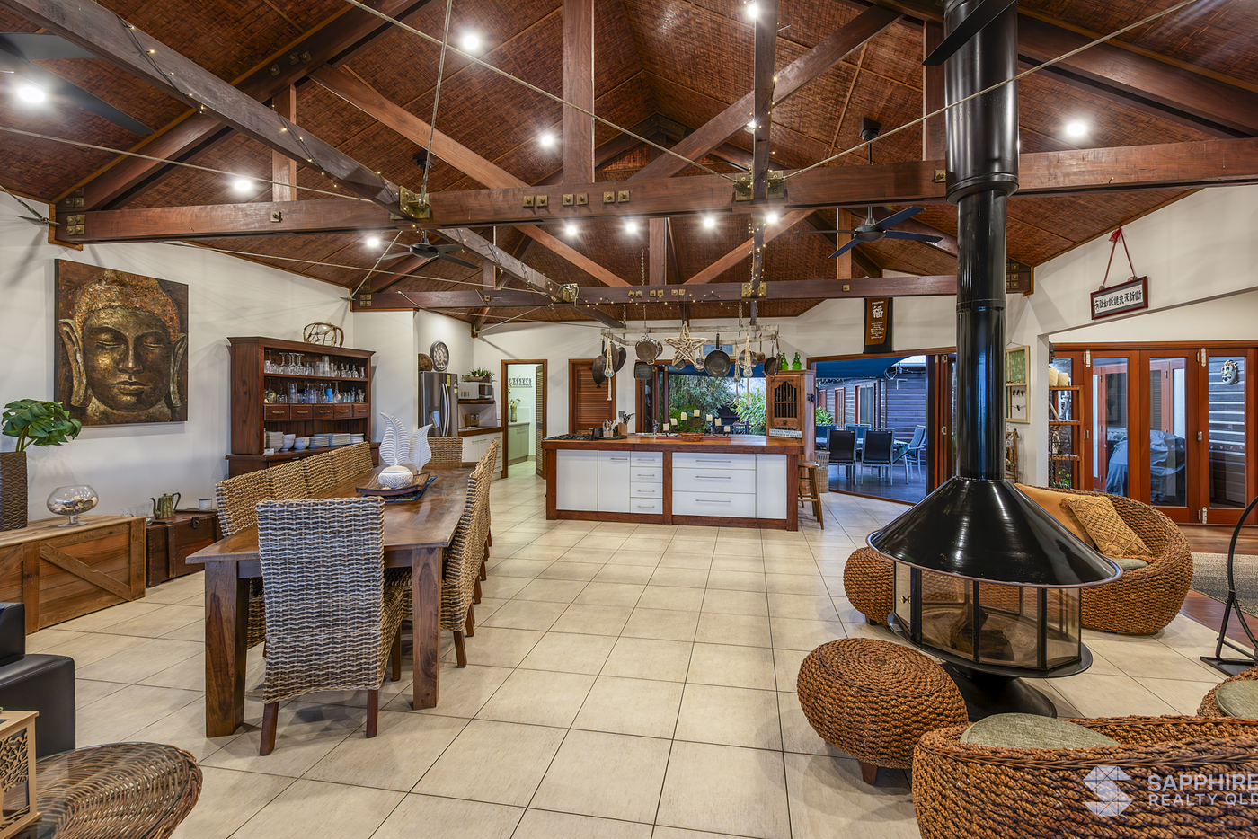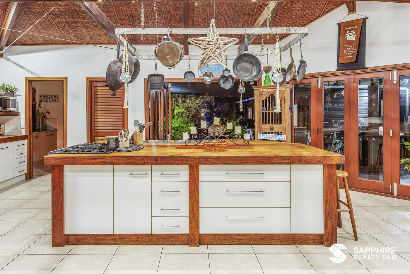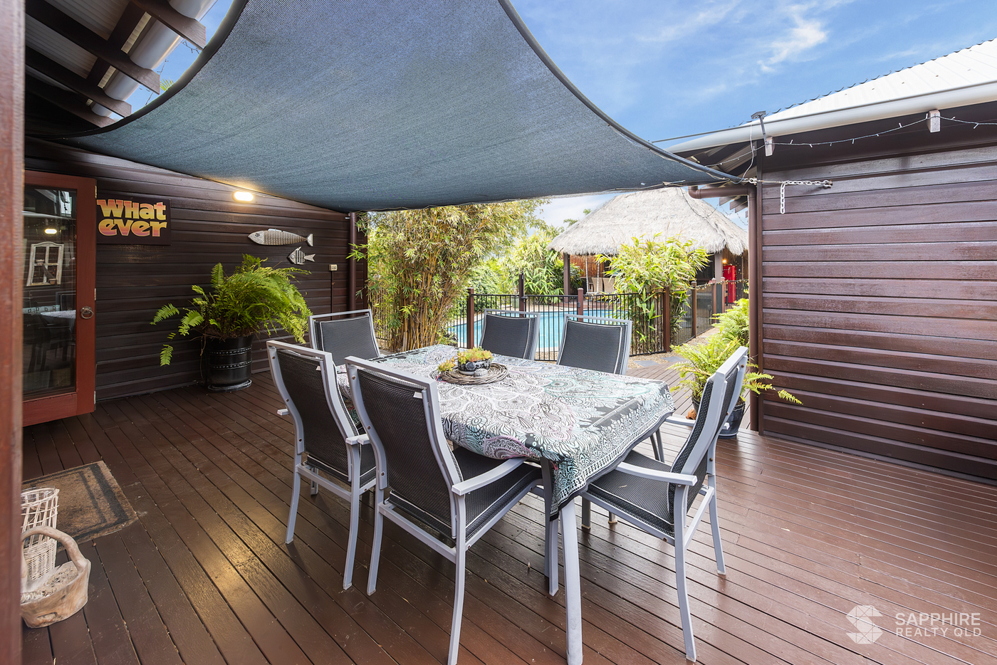 Imagine waking up to uninterrupted, panoramic views of the Coral Sea-this is the lifestyle offered at 109 Sea Esplanade. With no obstacles between you and the horizon, every sunrise and sunset becomes a private show from the comfort of your home. Set on a rare double block of approximately 1,860m², this property is more than a home; it's a coastal sanctuary designed for relaxation, entertaining, and income potential. Featuring five bedrooms, two bathrooms, and two full kitchens, the layout is perfect for dual living or an Airbnb opportunity. Architecturally crafted ceilings enhance the sense of space, while the fireplace adds warmth and charm. The exterior's hardwood weatherboard finish adds a stylish, timeless appeal and a warm, welcoming feel that complements its coastal setting.