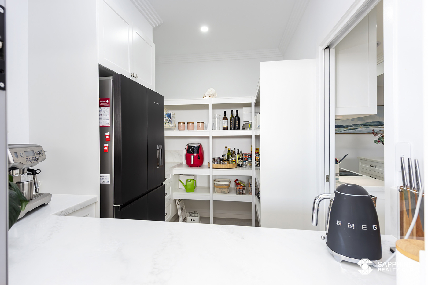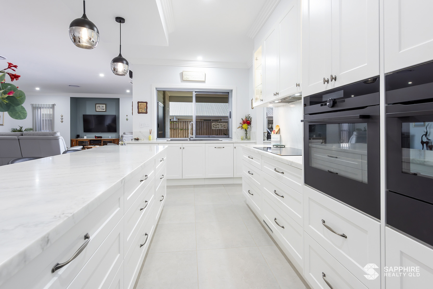 Step inside through solid timber doors framed by exquisite New Guinea Rosewood surrounds, setting the tone for the quality that continues throughout. The expansive floor plan spans over 320 square metres and features ducted air conditioning and heating, ceiling fans throughout, and Bradnam Signature Series windows fitted with Crimsafe screens for comfort and security. The heart of the home boasts stone benchtops, soft-close cabinetry, and a suite of integrated M.E.G. appliances-including a pyrolytic oven, induction cooktop, warming drawer, combi oven/microwave, and integrated dishwasher-perfect for those who love to entertain or cook with precision.