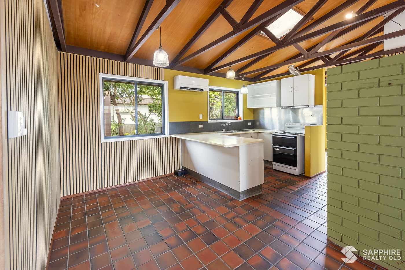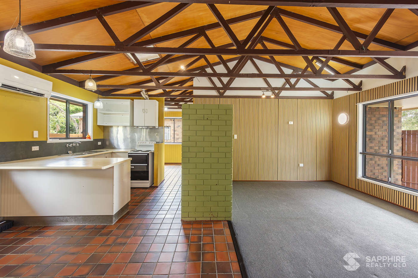 Inside, the open-plan living area is complemented by a split-system air conditioner, ensuring comfort through Bundaberg's warm summers and cooler months. A breakfast bar overlooks a private, paved garden courtyard-perfect for entertaining or relaxing in style.